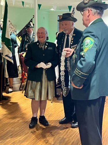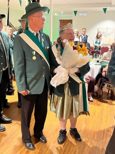 The event officially began with the Einmarsch starting in the parking lot out front of the building, proceeded inside to the dance floor. After the official welcome by Gruppenleiter Heinz Wiechmann, it was time for the moment we had all be waiting for: the announcement of the winners of the King Shoot: